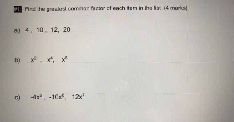 A) in A we see four numbers, they can all be multiplied by the following two numbers, 1 and 2. Two is the greatest so it is the GCF