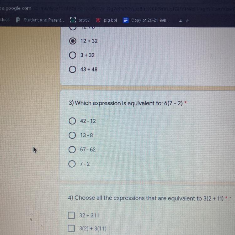 Which expression is equivalent to 6(7-2) PLEASE HELP ME