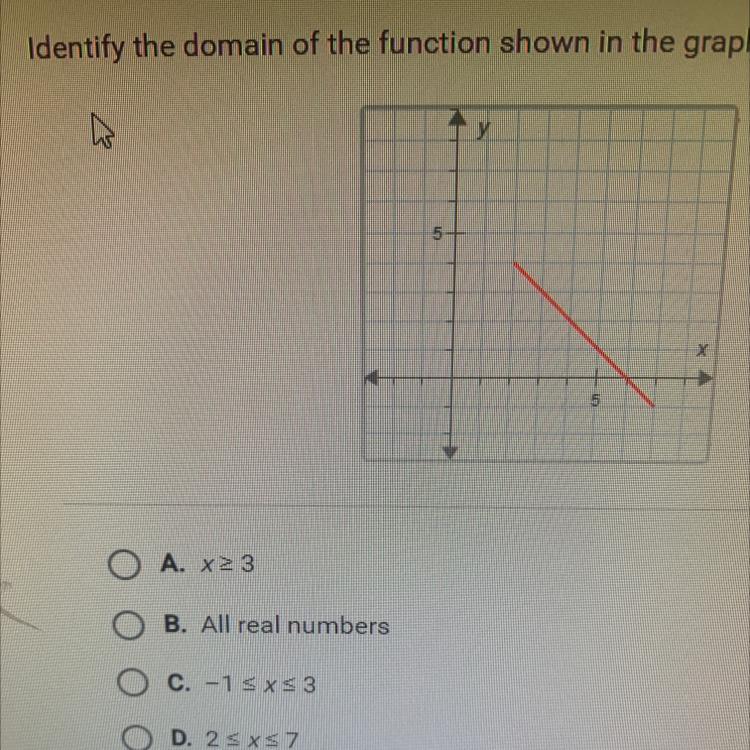 Identify the domain of the function shown in the graph. Need heal ASAP