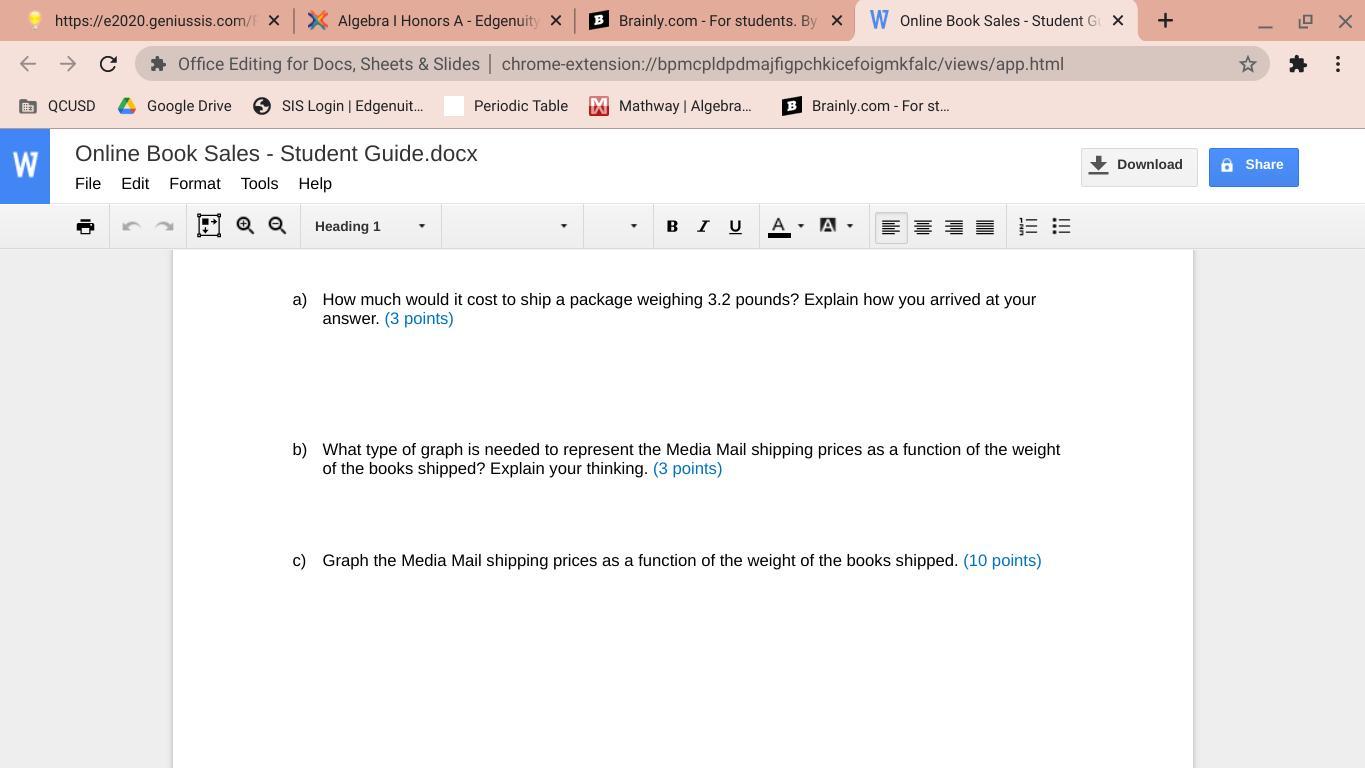 b)What type of graph is needed to represent the Media Mail shipping prices as a function of the weight of the books shipped? Explain your thinking.