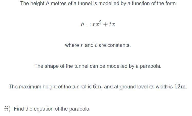 We know that the maximum height of the tunnel h is 6 meters.