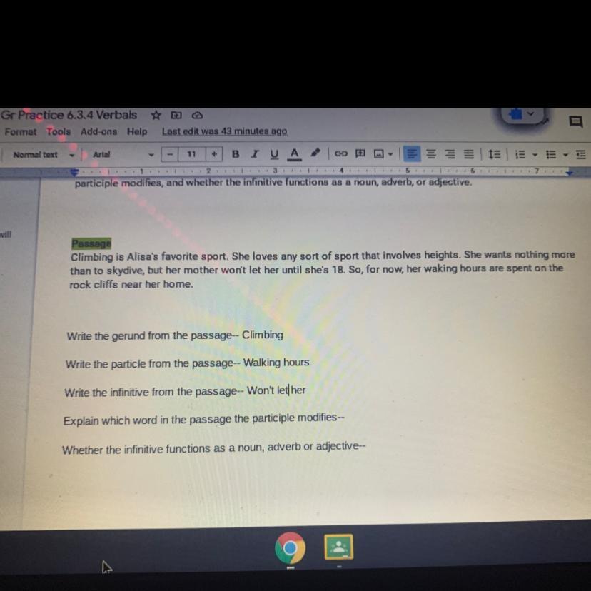 Answer: FYI: The infinitive in the text is “to skydive”.