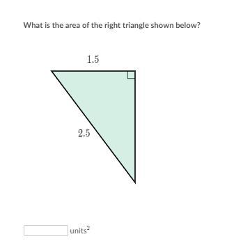Use the pythagorean theorem. a^2+b^2=c^2. a and b are the legs, or the shorter sides of the triangle. If you don't know which ones are shorter, just know that c is opposite of the right angle which is 2.5 in this case. So c is 2.5 and a is 1.5. Now you plug the values into the equation