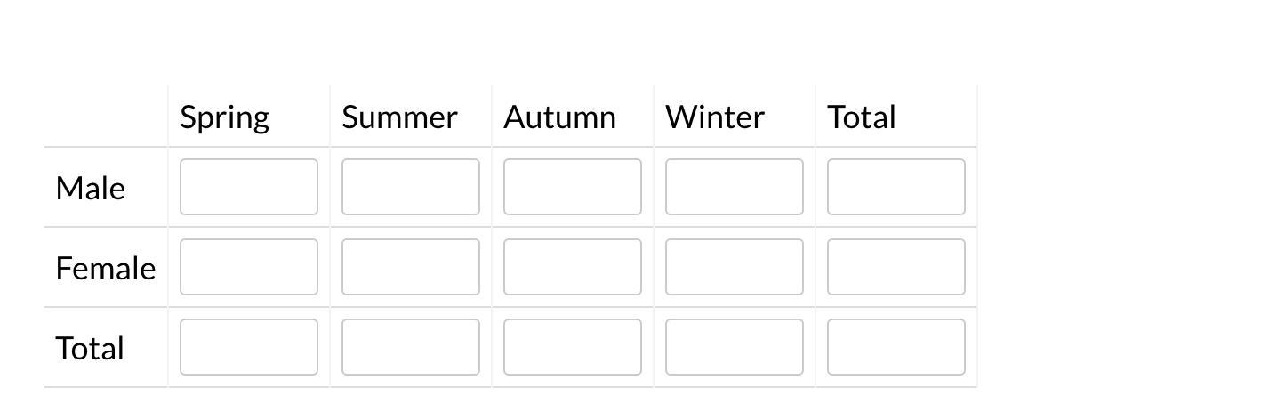 Three more boys chose autumn than the girls, so 10 boy/autumn.