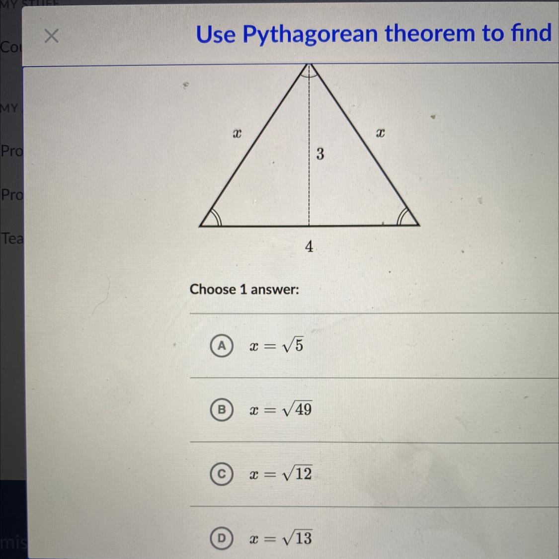 To find the length of the adjacent leg (a) use cosine. Remember cosine is Adjacent leg over hypotenuse.