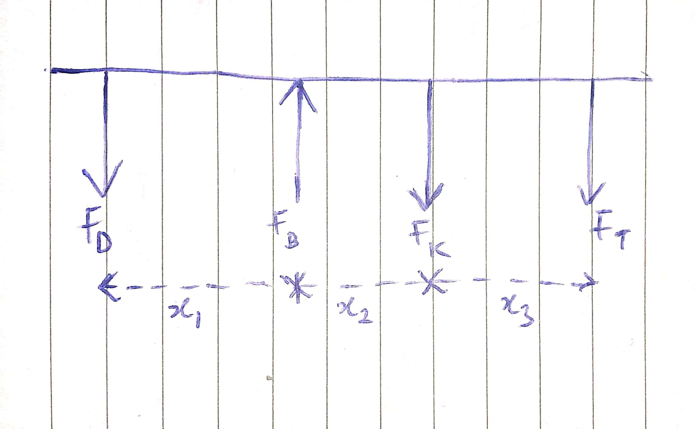 (F_d*x1) - (F_k*x2) - (F_t(x2 + x3)) = 0