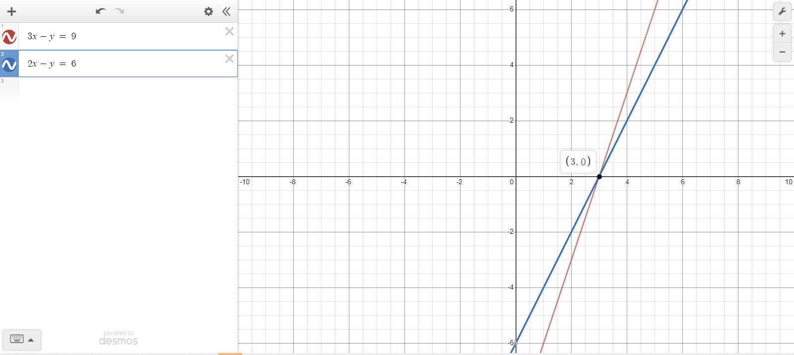 We see that the intersection point is x-intercept (3, 0).