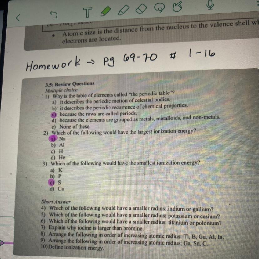 Since atomic size decreases across the period, the order of increasing atomic size shown in answer number 9 above is correct.