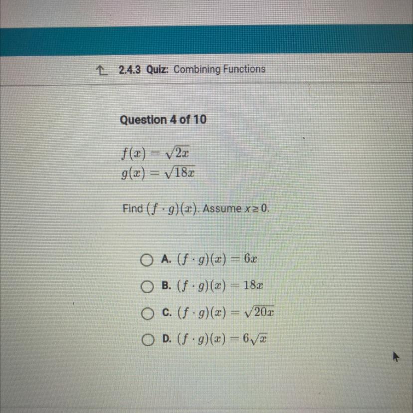 II. Replace x.value in f(x) with g(x).value = 2(18x)