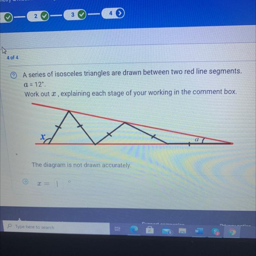 Angle TRS = 12 degrees because  isosceles triangle so TRS = a = 12 degrees.