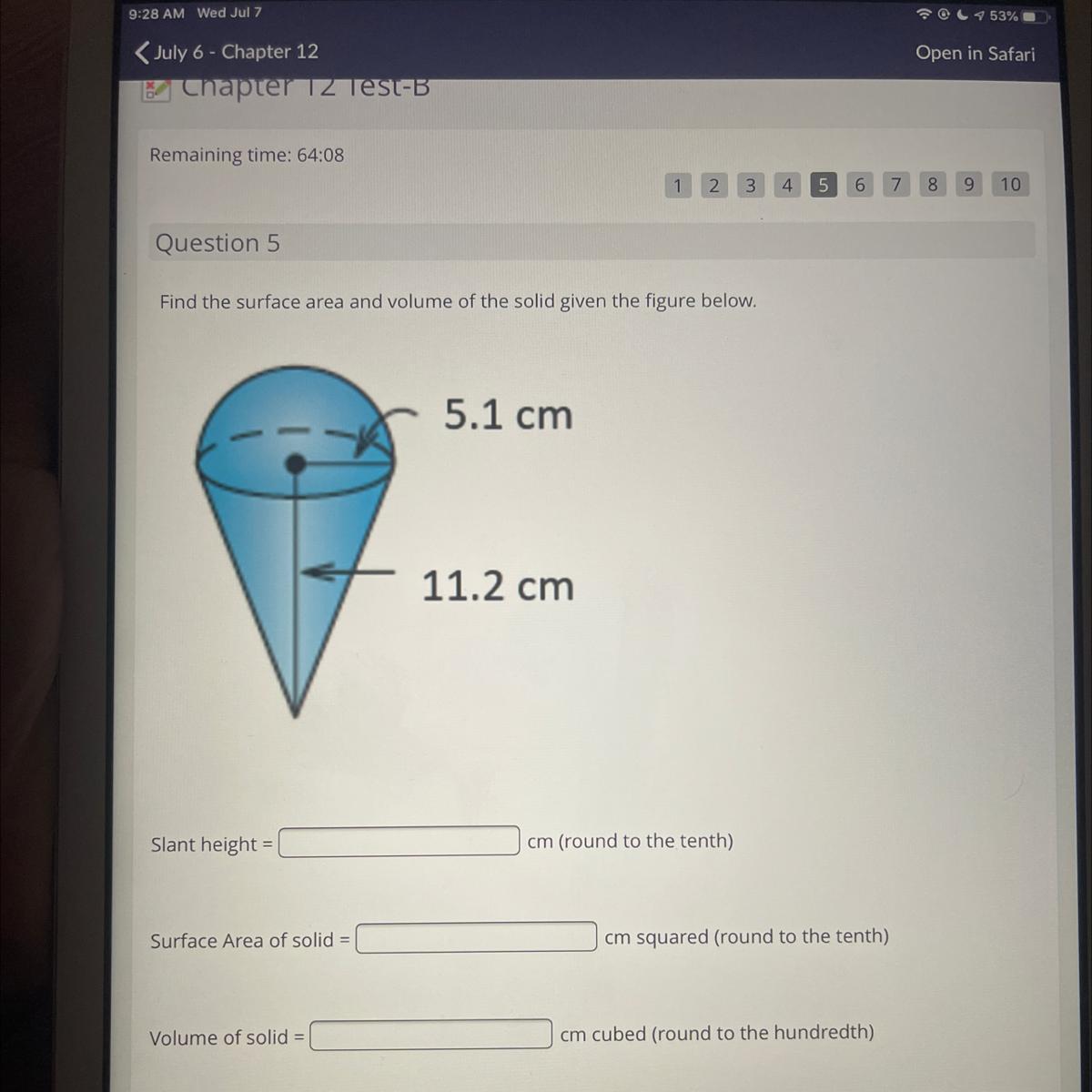 Volume - to fine the volume start with the cone...