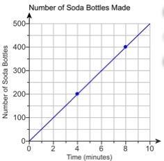 ) to find the number of soda bottles the machine can make each minute. Number of Soda Bottles Made 0 2 4 6 8 10 0 100 200 300 400 500 Time (minutes) Number of Soda Bottles A coordinate plane titled Number of Soda Bottles Made is shown. A horizontal axis is labeled Time (minutes) from 0 to 10. A vertical axis is labeled Number of Soda Bottles from 0 to 500. A line rises from left to right starting at the origin, (0, 0), and passes through plotted points (4, 200) and (8, 400). The machine can make nothing soda bottles each minute.