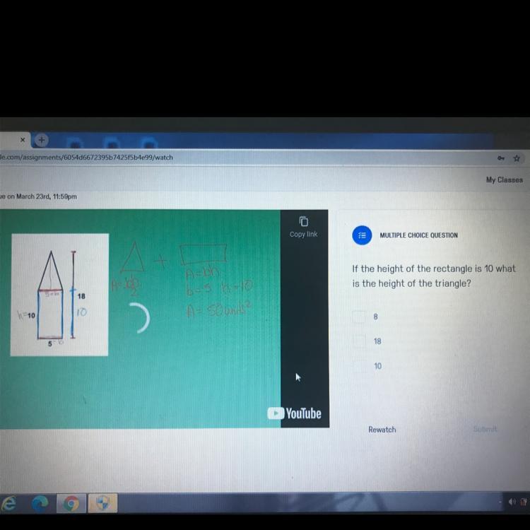 where b is the length of the base and h is the height. We know that b = 2.8 and h = 7.8, so you would substitute into the formula: