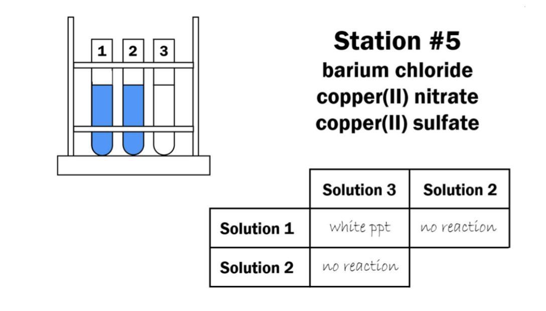 As you are asking for chemical formula and ionic equation, then, I will assume that after the station #5 below, are the solutions you are requiring.