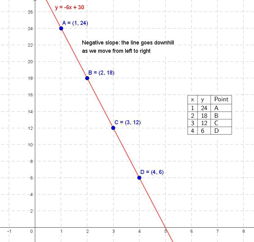 Visually we can see that the line goes downhill as you move from left to right. See the diagram below.