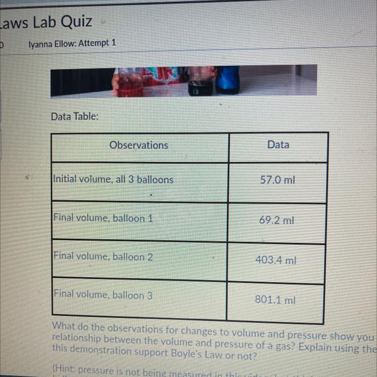 Answer: The given demonstration does not support Boyle's Law.