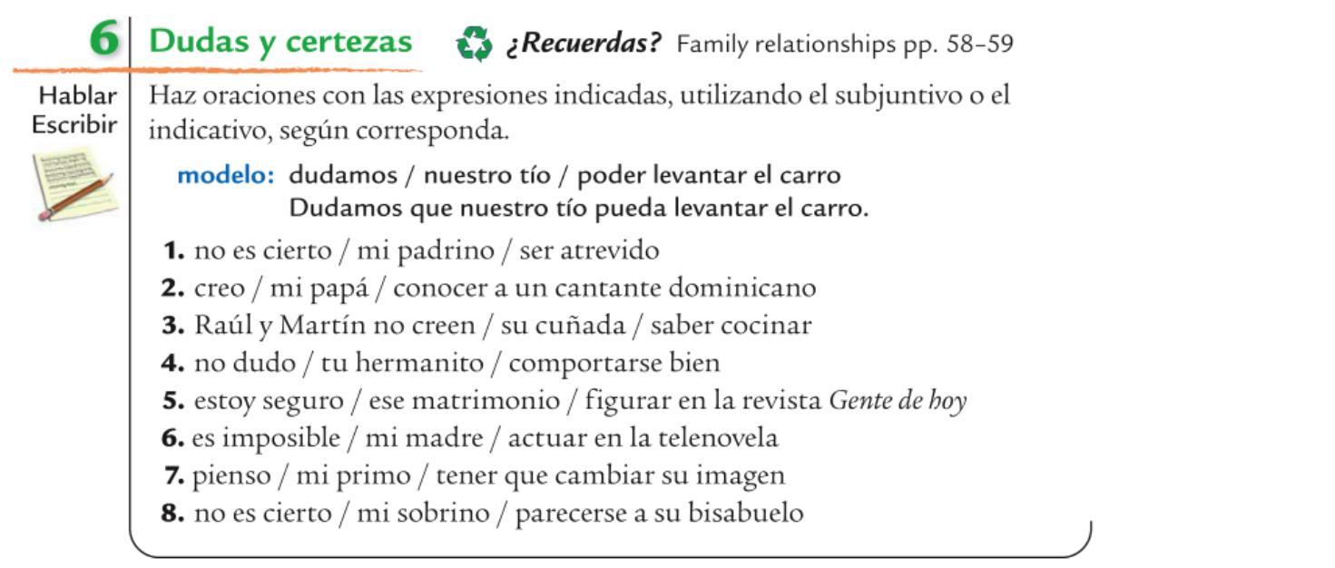 8. No es cierto, mi sobrino se parece a su bisabuelo.