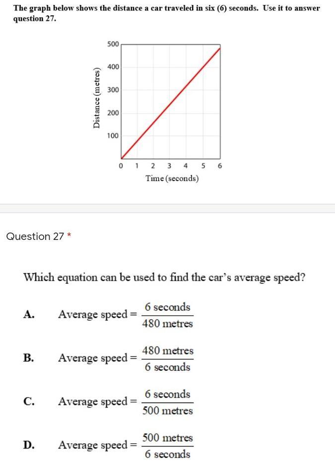 Since the graph shows 480 meters in 6 seconds, option B should be the correct answer!