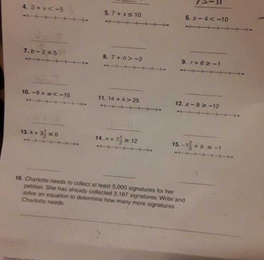 For the line graph the pic is below (circle is open because it is not an "equal to value" and doesn't include -8 in the answer. It goes to the left because v is anything less then -8)