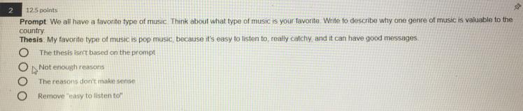 lastly #4, all it says is to take out 'easy to listen to' and again i do agree with since it does go with the prompt but it just doesnt make the best of sense.. maybe even wording it definitely would make a change.