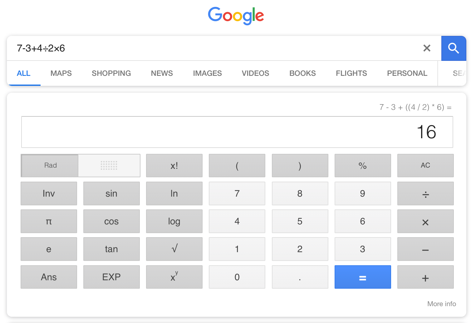 A Google or Bing search box will evaluate expressions such as this according to the order of operations.