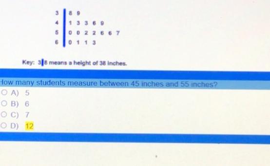 the heights between 45 and 55 are : 46, 49, 50, 50, 52,52