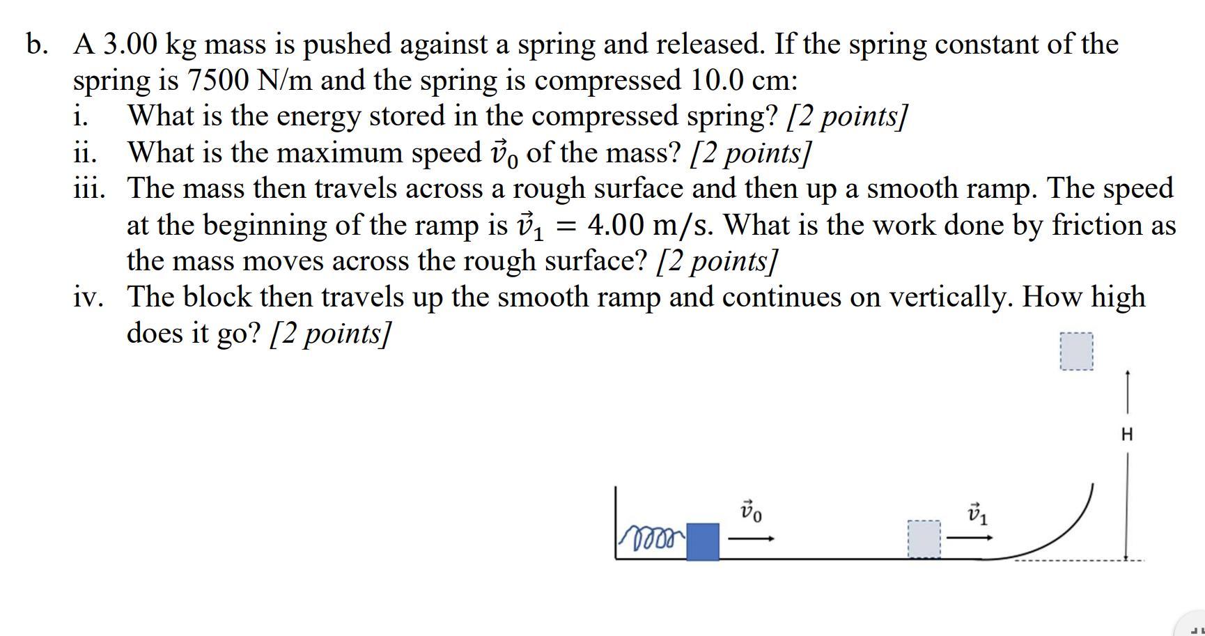 (Assumption: the surface between the mass and the ground is frictionless until the mass separates from the spring.)