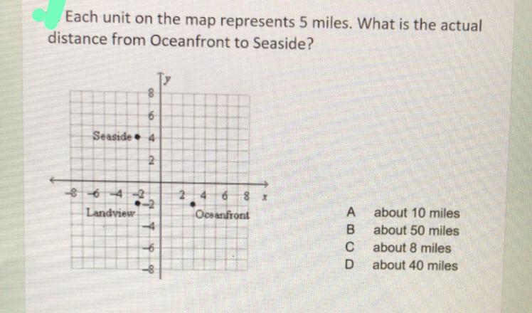 In order to answer the question, you first need to find how many units on the graph Seaside is from Oceanfront - or how long the line between the two points is.