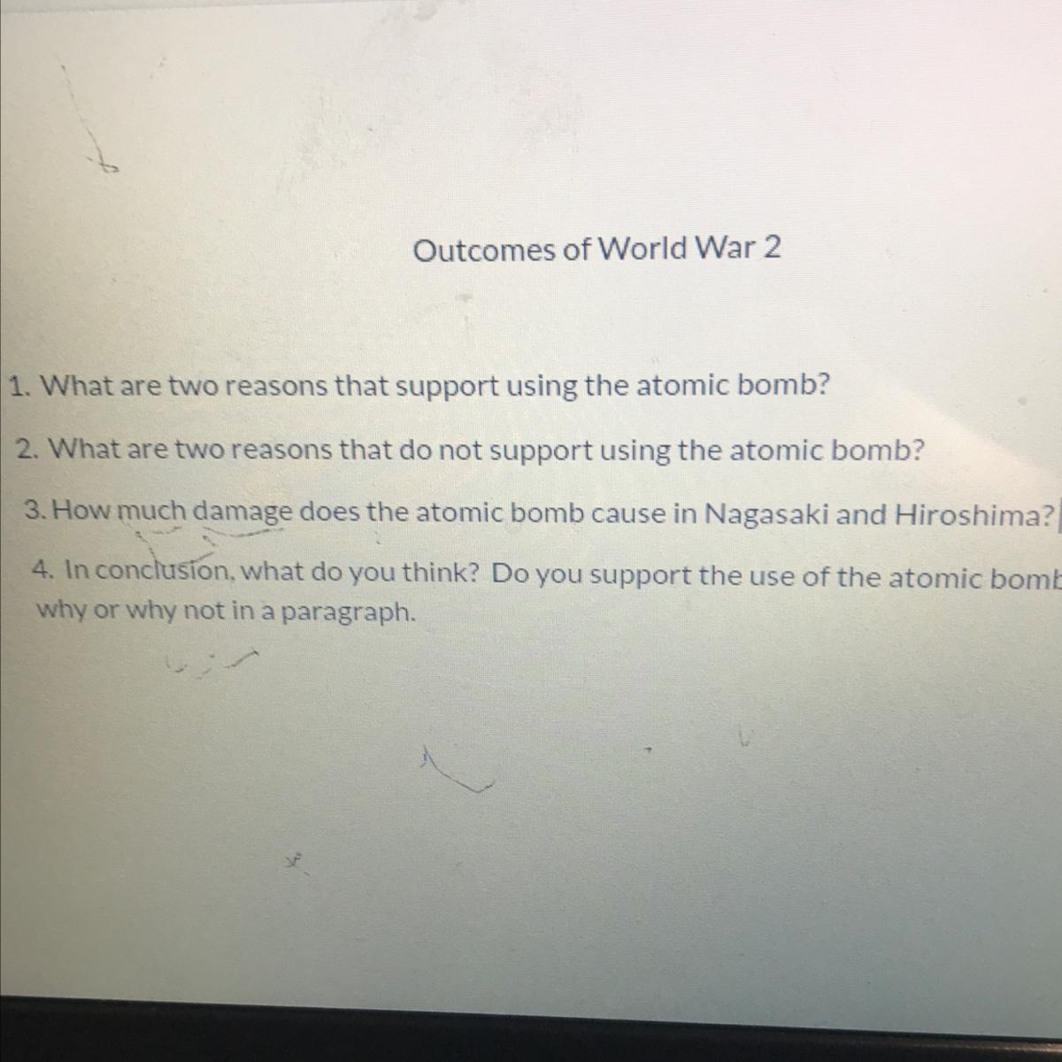 4) Overall I don’t support the use of Nuclear bombs because I think the cons ou the pros, sure the bomb has stopped and prevented wars and the deaths of soldiers but they have caused much more deaths of innocent civilian.