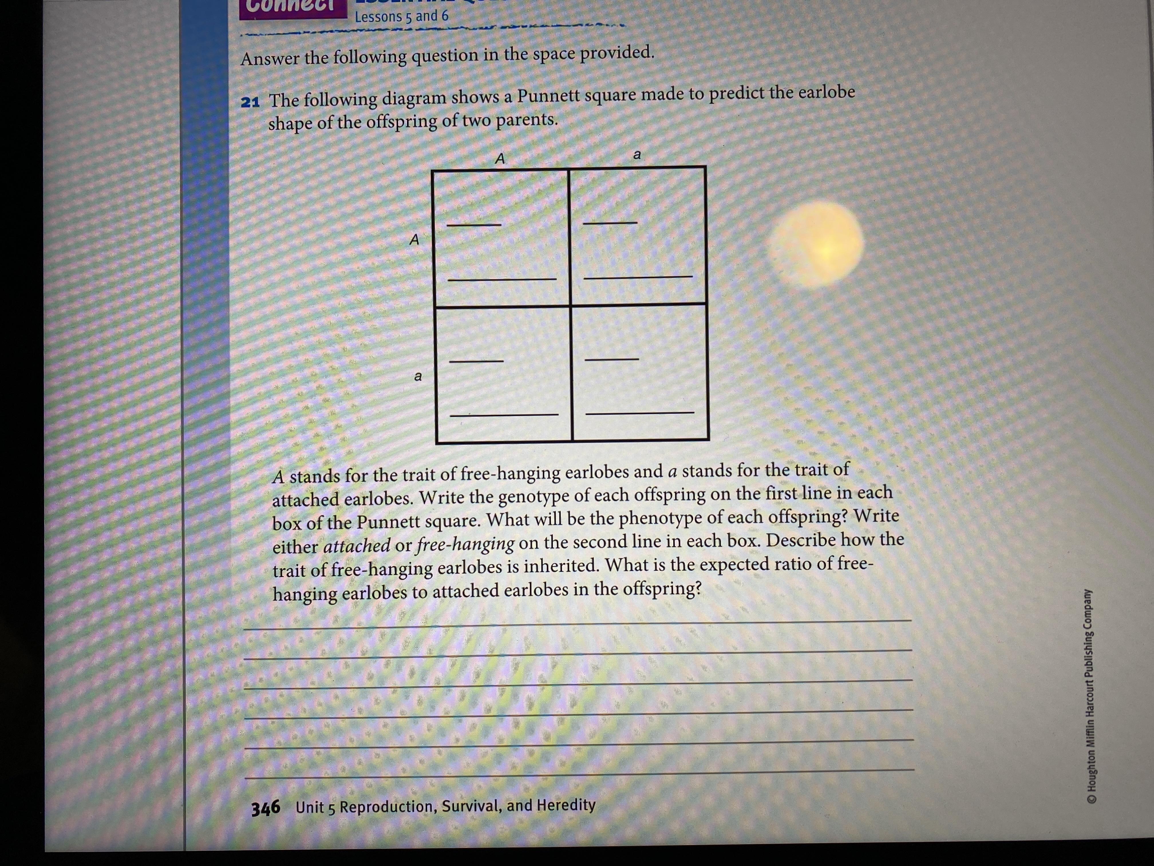 This one above is ^^^ is for the second line in the punnet square (the longest line) P.S you dont have to write the explanation you can just write if it's an attached earlobe or a free-hanging one