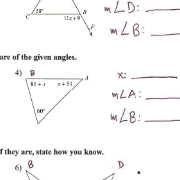 The value of the missing angles can be determined by the finding the value of x first;