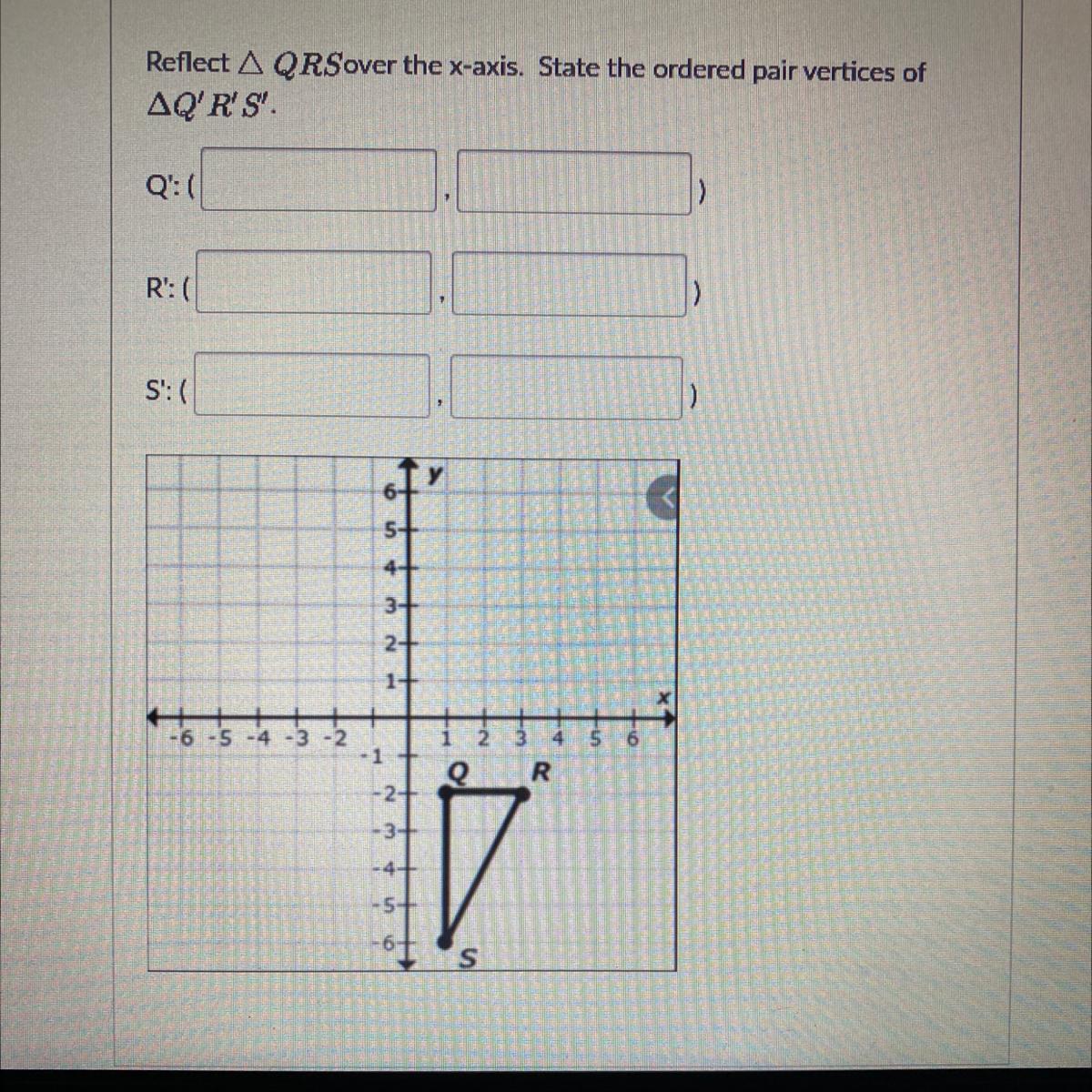 Step-by-step explanation: Here, we're asked to reflect ΔQRS over