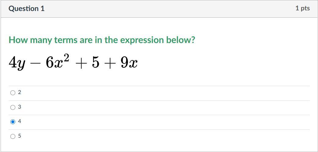 Even if a constant is multiplied by a variable, if there isn't a multiplication sign, it's one single term.