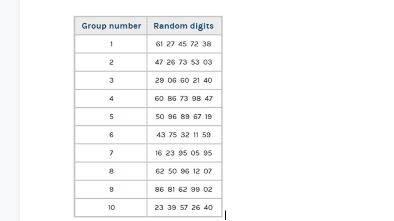 The table shows pairs of random digits. The pairs in each group simulate the 5 shots taken by the opponent.