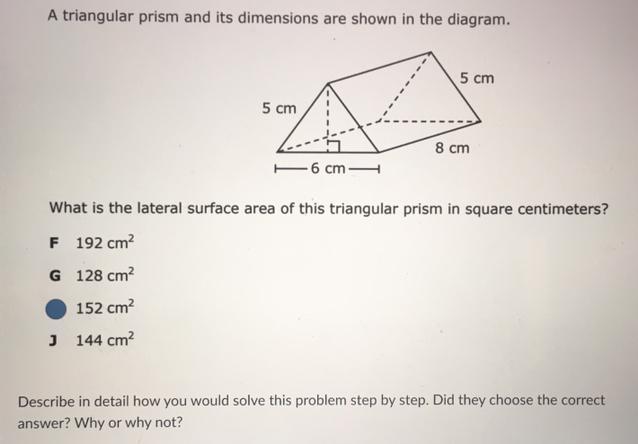 In other words, they didn't choose the correct answer because the correct answer is J) 144 cm².