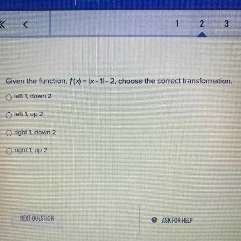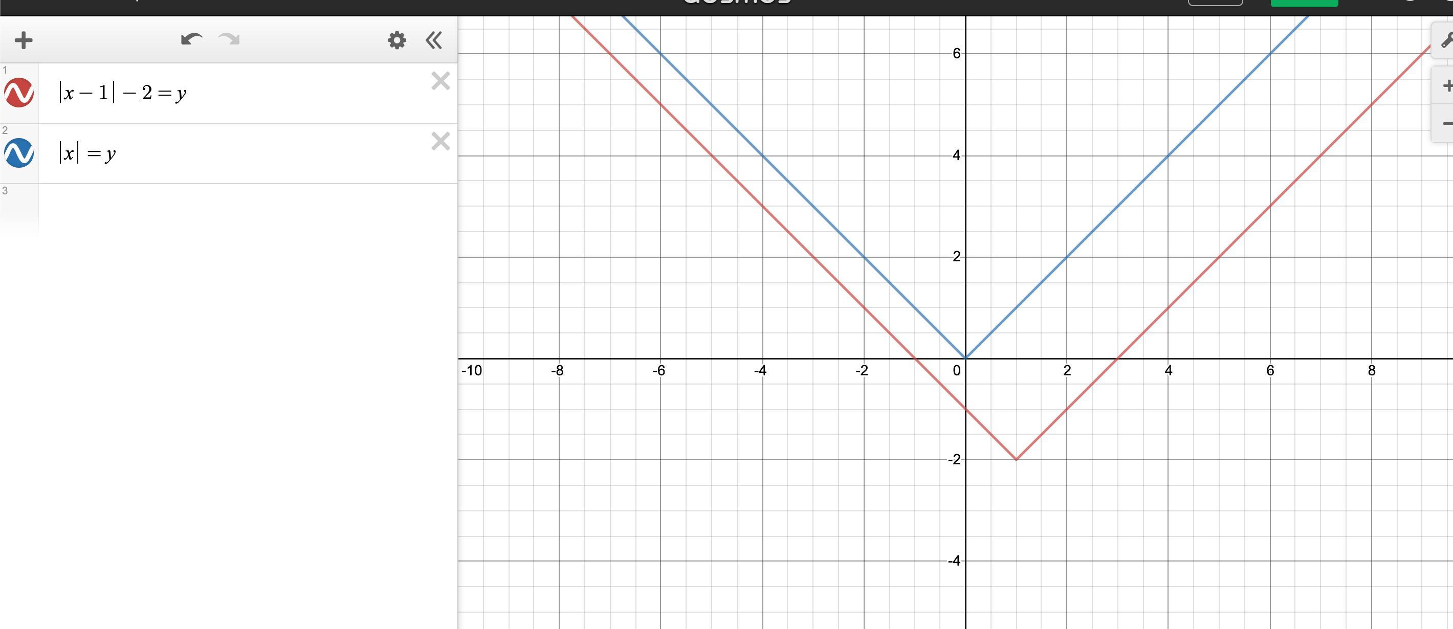 I attached a desmos graph so you could get a better understanding but it's right 1, down 2