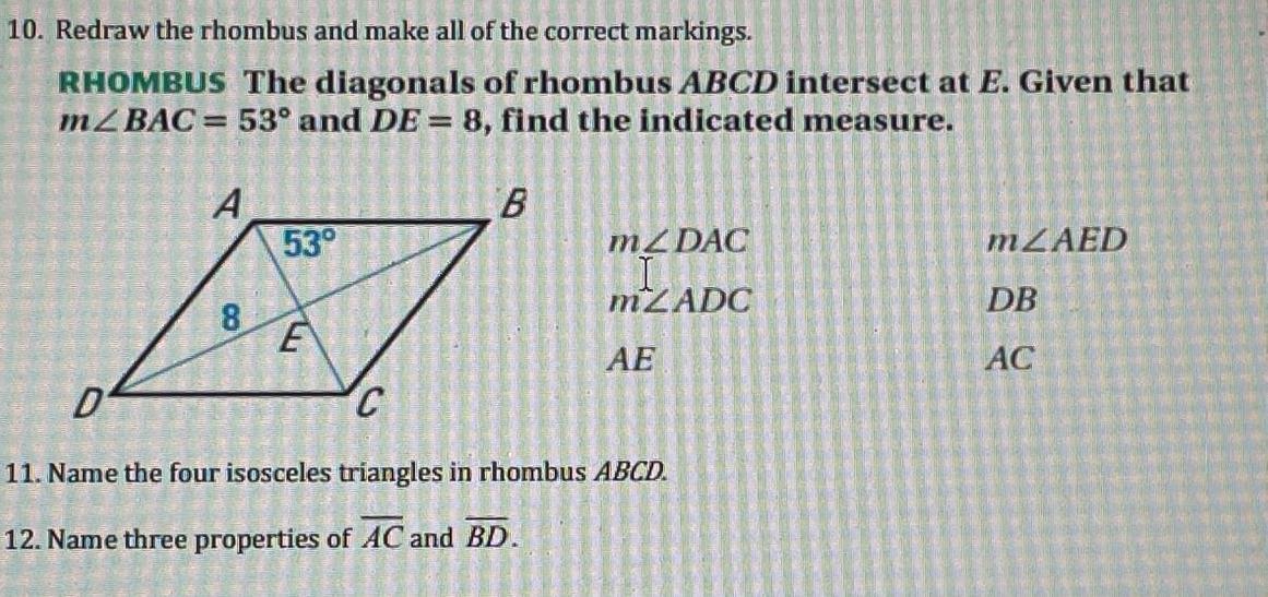 The angles at E is 90 degrees because diagonals AC and BD meet at a perpendicular.