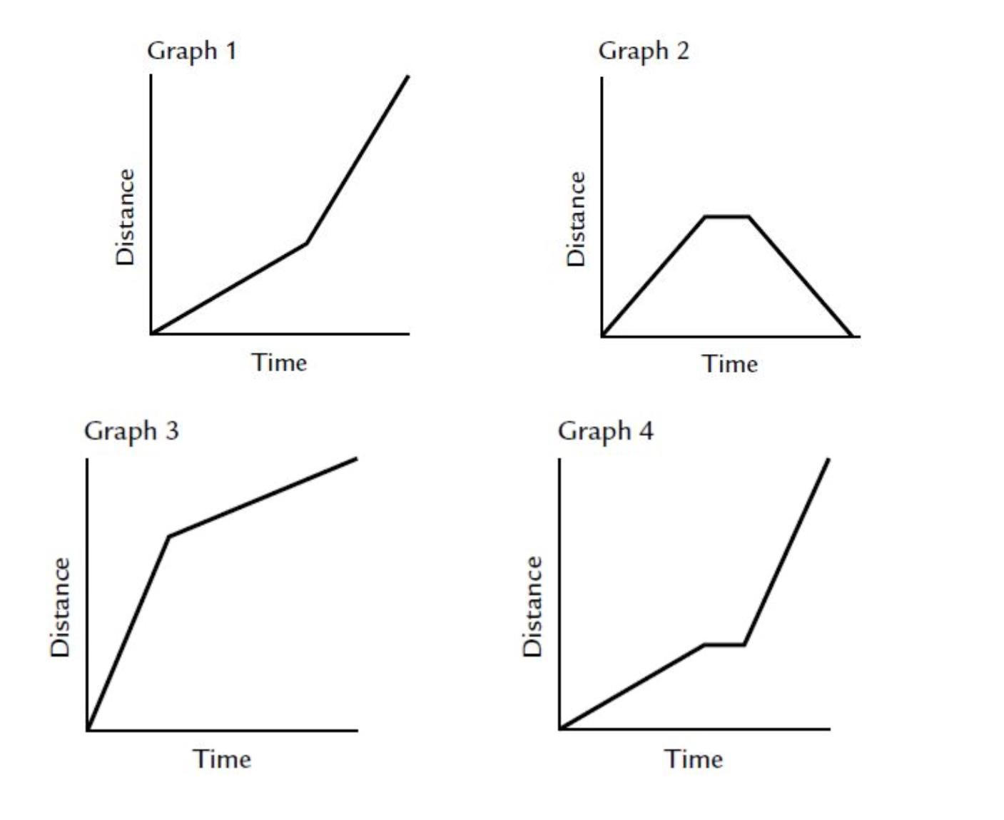 Description B has a constant slope, a zero slope, and a higher slope. Graph 4 goes up normally, then stops, and finally goes steeper. This fits description B.