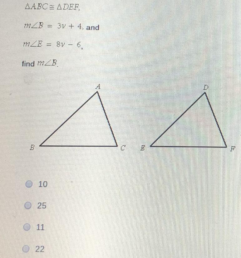 10. Set 3v+4=8v-6 solve for v. v is 2. plug 2 in for v in 3v+4... 3*2+4=10