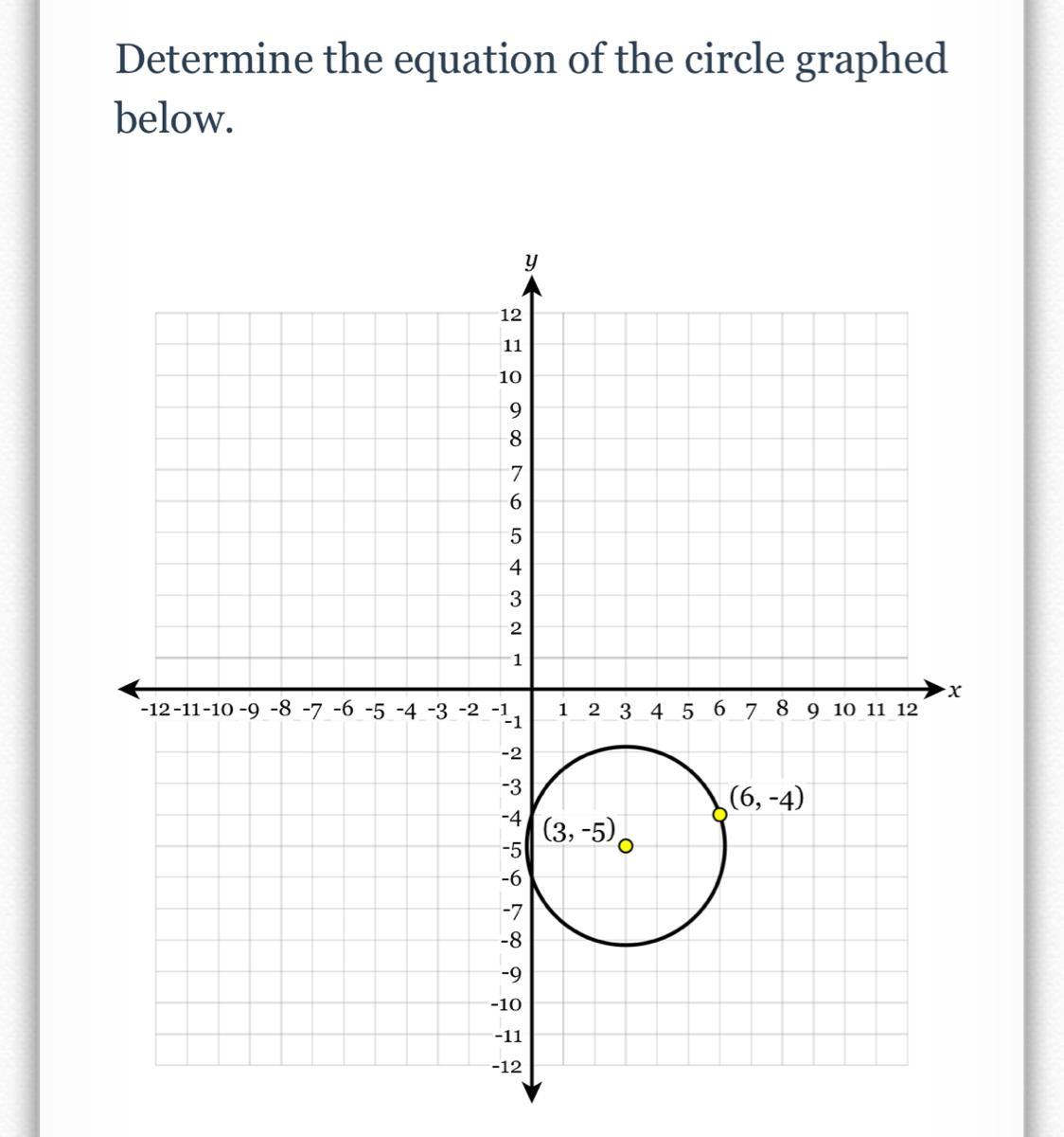 (x - 3)² + (y + 5)² = 10 ← equation of circle
