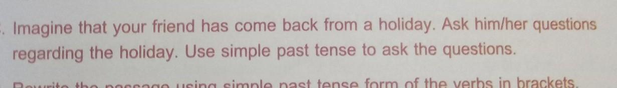 The above questions can be asked of a friend who has just arrived from a holiday trip. As requested, all questions are using simple past tense, which refers to a way of placing sentences in the past, highlighting an activity that was done previously.
