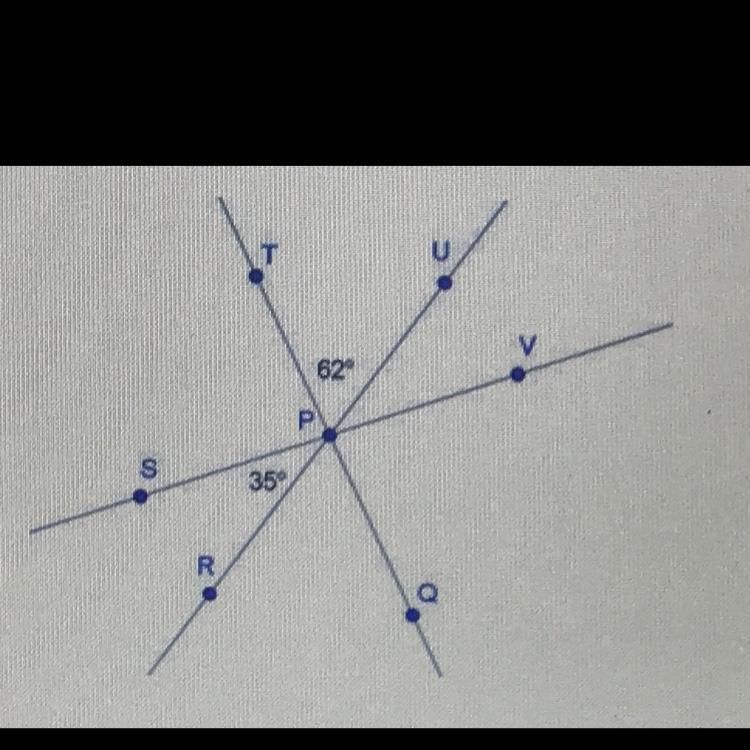 You can draw a circle around the point P, and a circle have 360°, so it means that the sum off all the angles have ro be 360°. Some of these angles have the same measure, because they're formed by the same lines segments, they are: