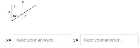 The hypotenuse is 32, divide it by 2, and it's 16.