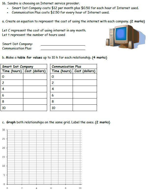 a. Smart Dot Company: C = 12 + 0.5·t