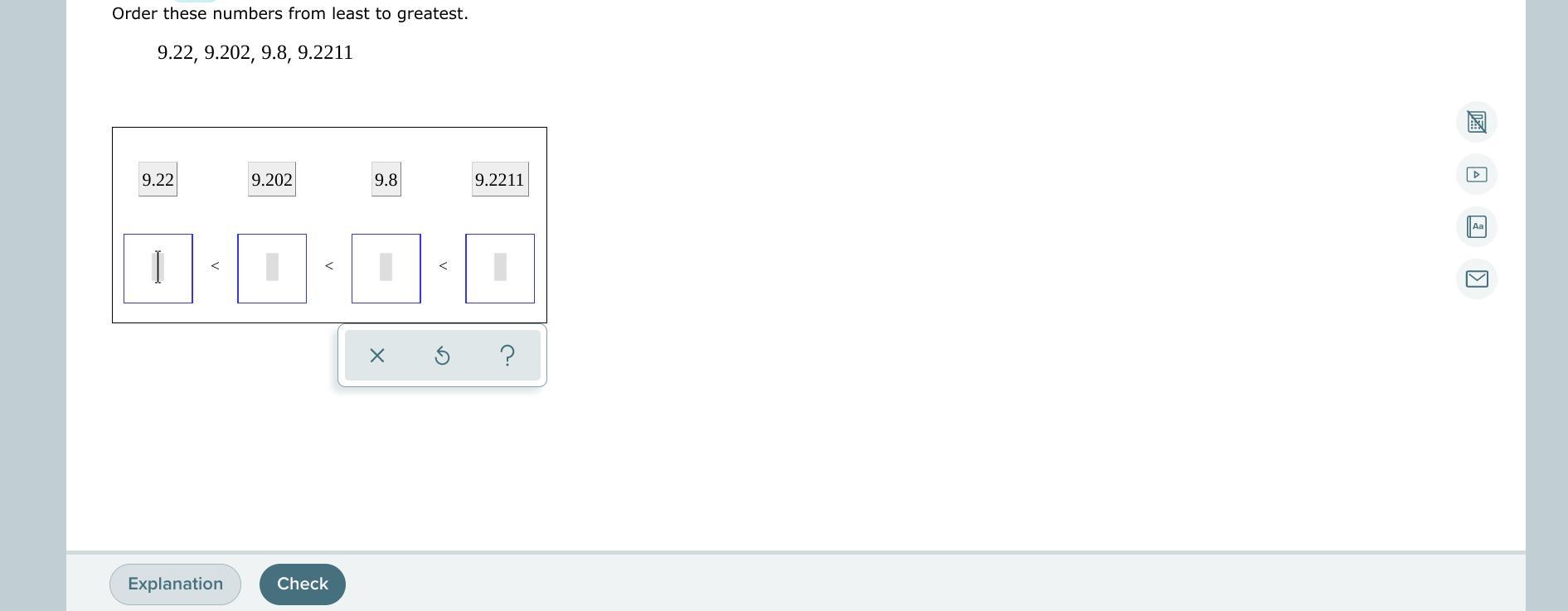 Arranging : 9.2020 < 9.2200 < 9.2211 < 9.8000