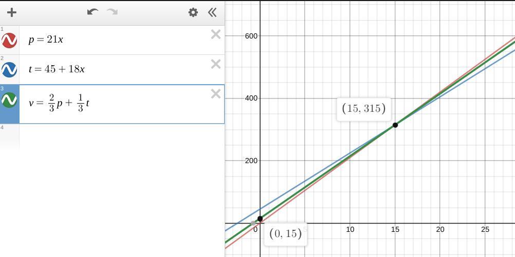 2. Value Printing wants their pricing to be somewhere between the prices of the other two shops. That means their per-jersey cost will be somewhere between $18 and $21, and their setup cost will be less than $45. It also means their cost for 15 jerseys must be exactly $315, as it is for both other shops.