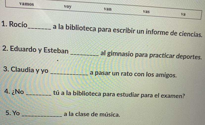 Verb of “ir” where each student is going please help thank you