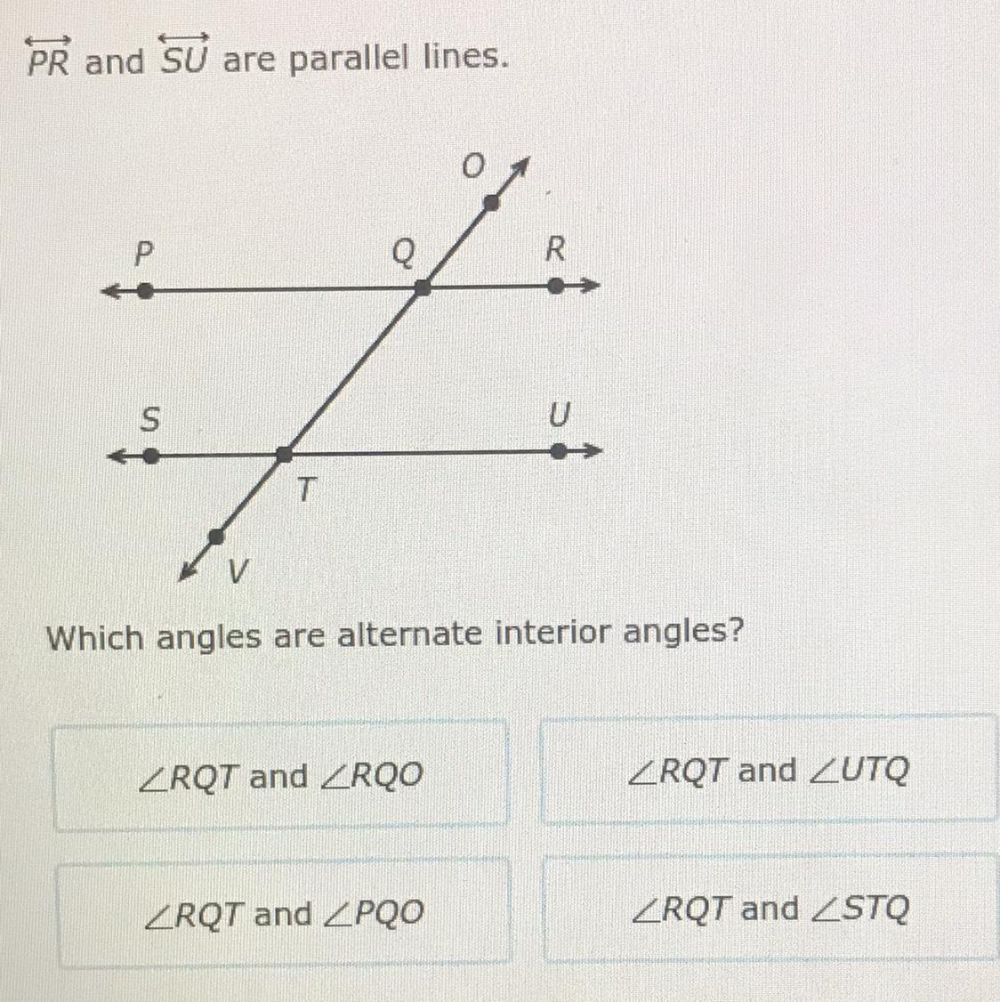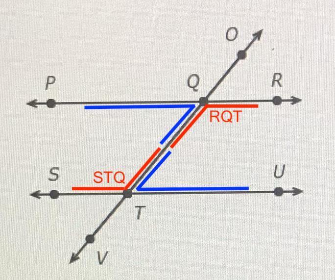 In the attached, pairs of alternate interior angles are identified in the same color (red or blue).