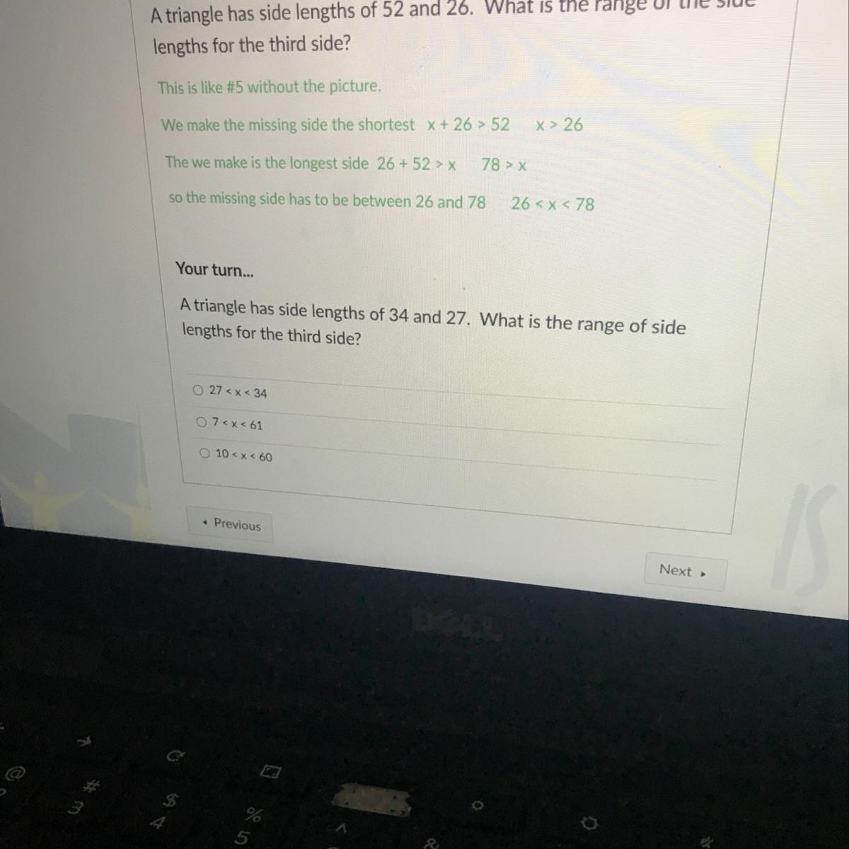 42 because x is equal to its corresponding side