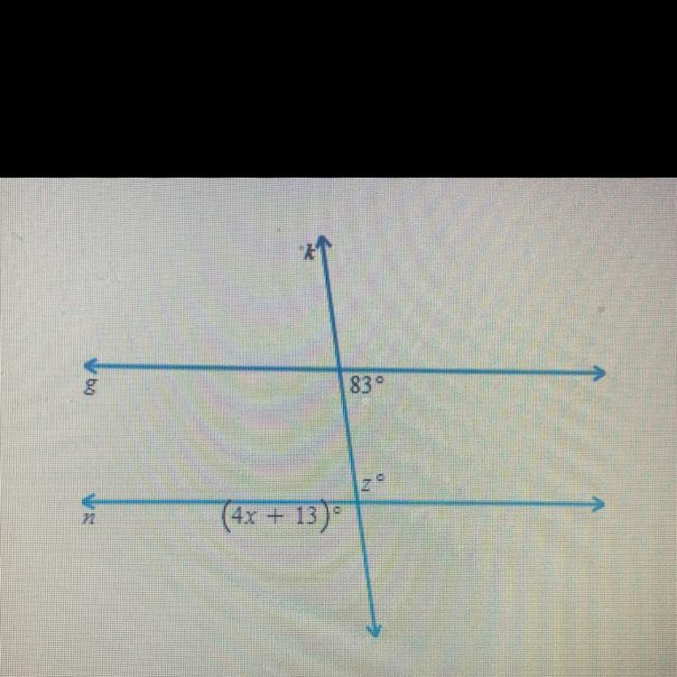 And assuming that your lines are parallel, the angle under angle z should be 83° just like the angle above angle z